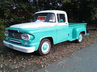This is when trucks were simple, functional, and designed distinctively. This is the 1960 Dodge D100. Has a 3-speed on the tree and drives like a truck Im sure. Looked too good not for me to grab a pic of this. No A/C, no power steering, no power brakes, none of that. I'm sure it has heat, but something like this is so timeless, it does the job as good then as it does now. Love the colors. So 1960!